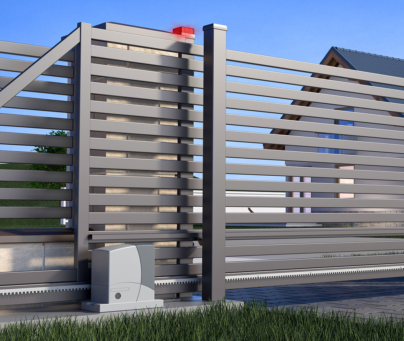 Alle Komponenten – vom Scharnier bis zum Antrieb – bilden ein harmonisches Gesamtbild und ergänzen unsere Zaun- und Torsysteme perfekt.